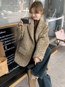 Benview【实体专供】加厚毛呢西装外套女2025新款秋冬小香风短款