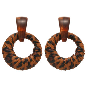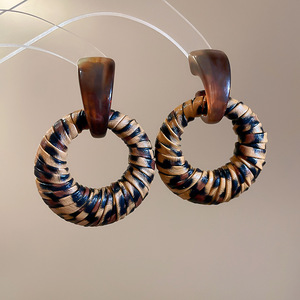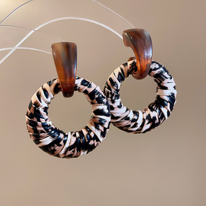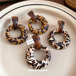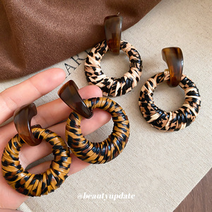 银针豹纹皮革树脂几何圆形吊坠耳环美拉德风耳钉小众设计感耳饰女