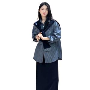 大码胖MM轻奢韩系简约春秋季时尚显瘦套装女披肩衬衫半身裙三件套