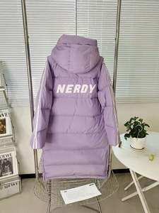 冬季NERDY韩系过膝加厚后背反光字母潮流情侣同款连帽长款羽绒服