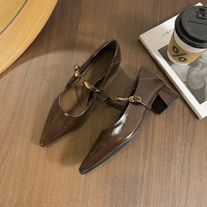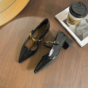 5厘米【小金条ultra】秋季新款护趾棉玛丽珍粗跟高跟鞋玛丽珍复古