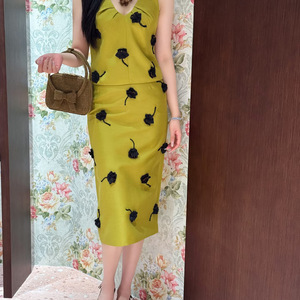 【生产中】2025秋冬新款 直筒包臀裙手缝花朵中长款半身裙女