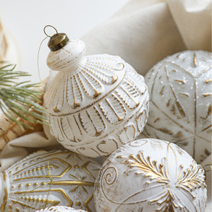 新款塑料白金色圣诞球异性挂件哑光复古轻奢雪花礼仗圣诞树挂饰