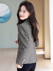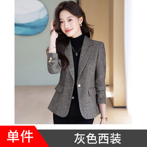 灰色毛呢西装外套女秋冬2025新款长袖时尚气质小个子加厚羊毛西服