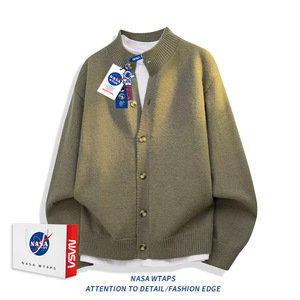 NASA ABOUT美式复古开衫毛衣男款秋冬季高级感宽松休闲针织衫外套