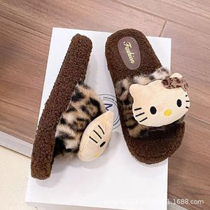 古着风KT猫~!豹纹毛毛拖鞋女新款ins秋冬季外穿厚底防滑保暖棉拖