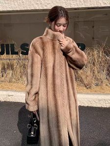 2025秋冬加厚长款立领仿水貂毛加厚毛毛环保皮草外套女年轻款大衣
