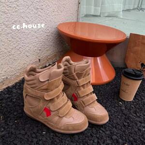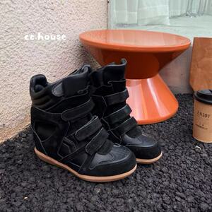2025秋季新款真皮内增高8CM厚底魔术贴高帮鞋女板鞋百搭休闲运动