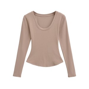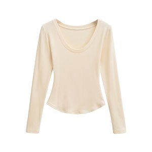2025女式百搭款沙漏腰长袖T恤打底衫