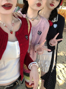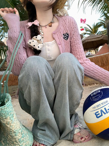 2025秋季新款韩系刺绣麻花毛衣开衫上衣女圆领长袖针织衫外套外搭