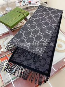 秋冬季高级感g家双面牛仔蓝围巾女字母提花黑色羊绒披肩保暖围脖
