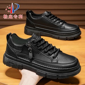 专利款秋季男鞋新款透气防水厨师鞋子男潮流百搭休闲黑色皮鞋短靴