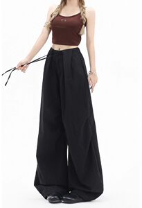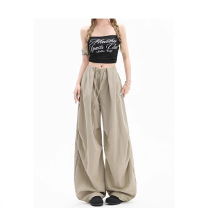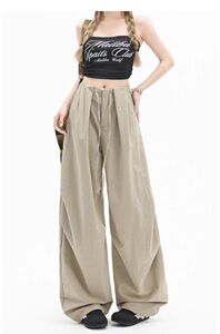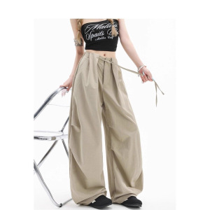 老钱风设计感弯刀阔腿休闲裤女2025早秋高腰抽绳松弛感运动工装裤