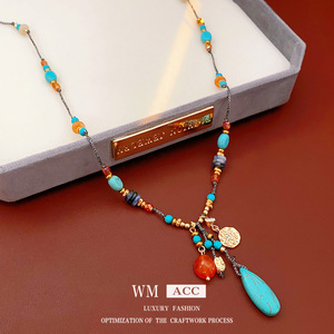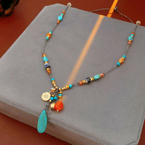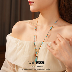 绿松石四芒星串珠项链长款吊坠复古民族风毛衣链小众饰品女高级感