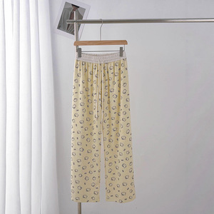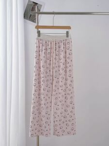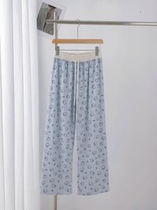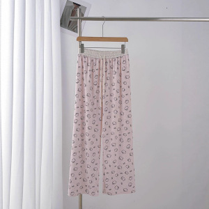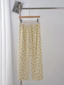 、拼色腰卡通猫咪印花直筒裤女2025秋季阔腿裤宽松休闲糯米遛弯裤