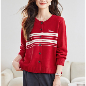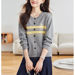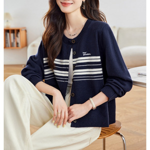 2025条纹毛衣外套女春秋圆领针织衫开衫宽松休闲外搭时尚洋气上衣