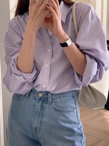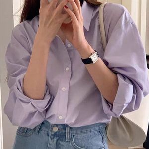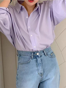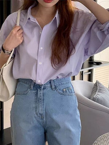 淡紫色气质衬衫女高级感轻奢上衣2025春秋季新款纯棉宽松长袖衬衣