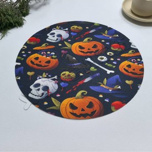 亚马逊跨境厂家直销万圣节系列圆形亚麻印花西餐厅垫厨房餐厅垫