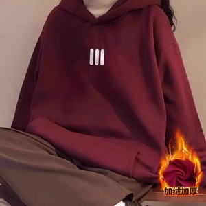时尚加绒连帽卫衣女秋冬加厚2025新款白灰色宽松长袖春秋薄款上衣