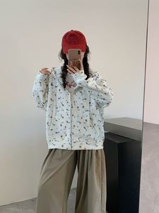 2025年秋时尚小狗花纹连帽卫衣宽松外搭休闲抽绳长袖上衣女ZG