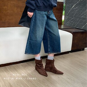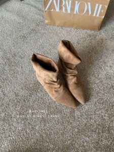 内增高堆堆短靴女鞋2025春秋季单靴尖头卡其色配裙子高跟瘦瘦靴子