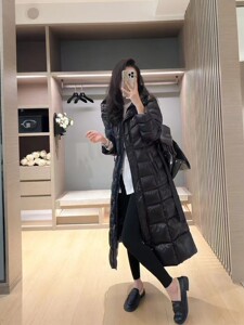 2025冬季新款系带收腰长款羽绒服加厚连帽过膝女士保暖白鸭绒外套