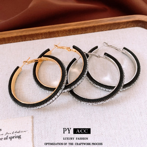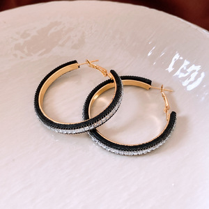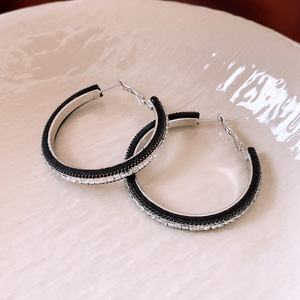 欧美复古银针镶钻圆形耳环简约时尚通勤风耳圈日常百搭耳饰女小众