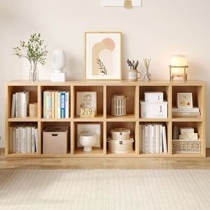 全实木格子柜书架落地置物架幼儿园书包柜矮书柜家用收纳柜置物柜