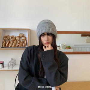 批发韩国2025年秋冬新款加厚保暖毛线帽纯色显脸小包头护耳针织帽