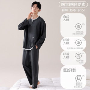 2025新款青少年睡衣男春秋季莫代尔棉长袖高档休闲可外穿家居服潮