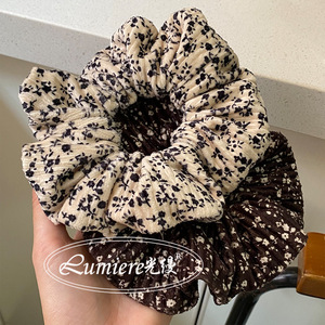日韩ins早秋复古灯芯绒小碎花发圈头箍森系文艺少女马尾头绳发箍