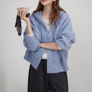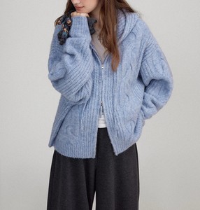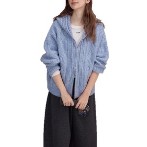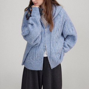 冰岛浪漫’慵懒感复古绞花柔软绵连帽针织开衫毛衣女秋冬