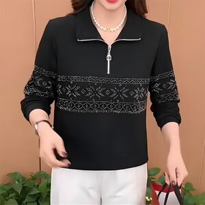 一件代发直播爆款2025秋季新品时尚立领烫钻卫衣显瘦减龄百搭上衣
