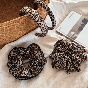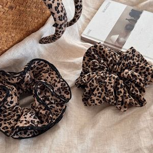 韩版双层豹纹大肠发圈女高级感扎头发橡皮筋慵懒风大号高弹力头花