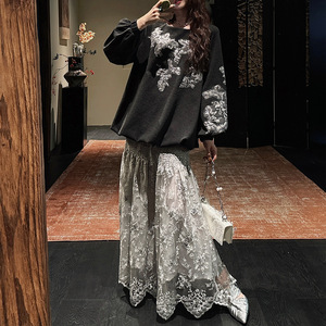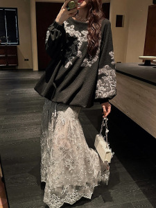 【簪上雪】手工贴花金银丝珠绣连衣裙