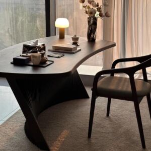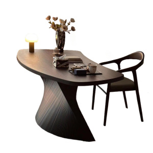意式极简现代家用书桌老板办公桌写字台扇形书法桌异形设计师茶台