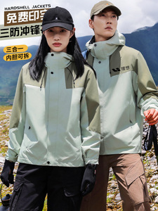 冬季三合一两件套冲锋衣定 制工作服印logo企业加绒物流外套印字
