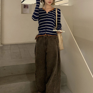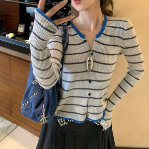 小香风撞色条纹针织开衫女2025秋冬新款韩系穿搭修身短款毛衣上衣