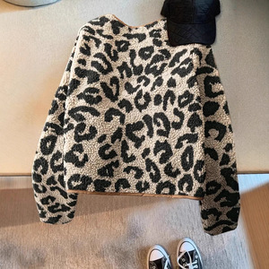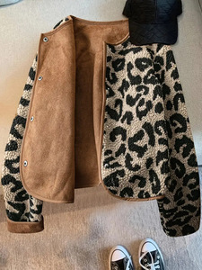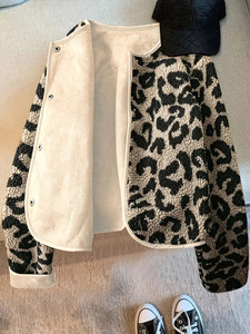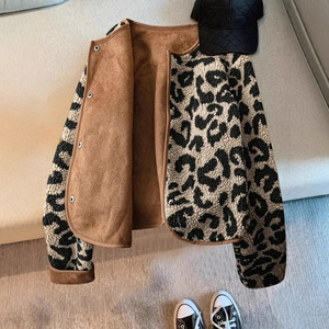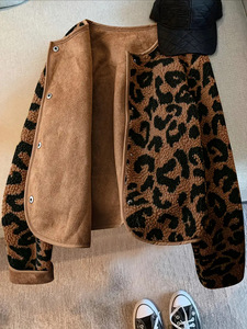 跨境豹纹皮毛一体短外套女秋冬2025年宽松休闲仿皮草豹纹外套上衣