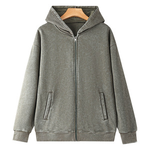 2025新款重磅350克水洗做旧拉链卫衣连帽开衫秋冬卫衣跨境出口版