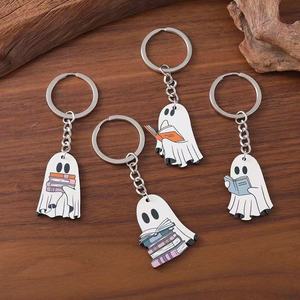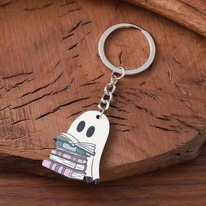 跨境热卖万圣节书本幽灵图案亚克力小鬼书籍爱好者节日礼物钥匙扣
