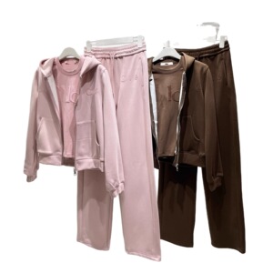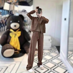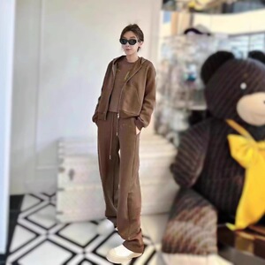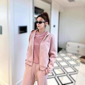 25秋冬Ch新款️字母烫印休闲三件套 短袖+连帽拉链外套+长裤潮流