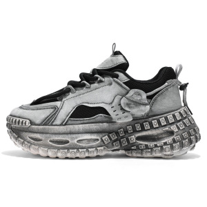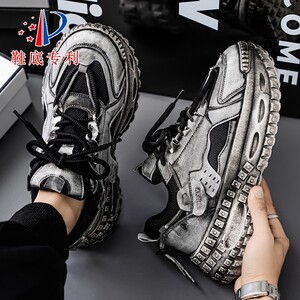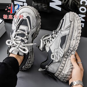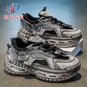 男鞋春季新款透气网面青少年运动鞋男潮流百搭轮胎底厚底老爹鞋男