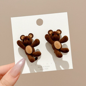 咖色植绒小兔子边夹精致小巧侧边发夹秋冬新款碎发前额鸭嘴夹头饰