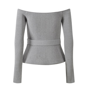 2025秋季新款法式名媛钻饰一字领气质优雅修身显瘦含腰带长袖上衣