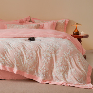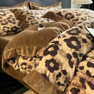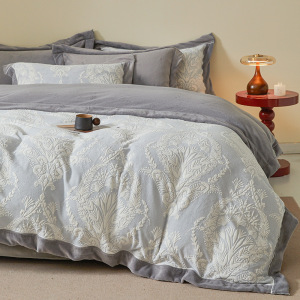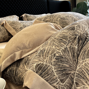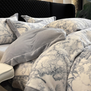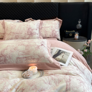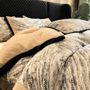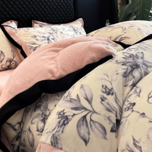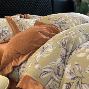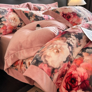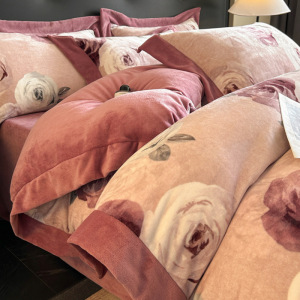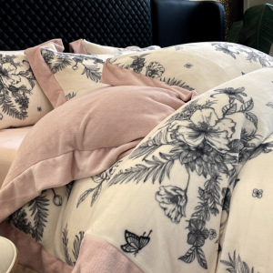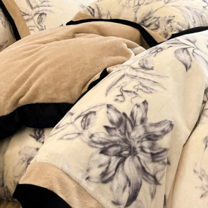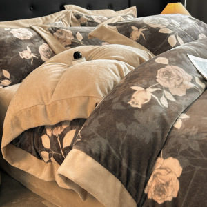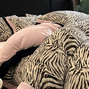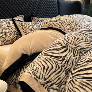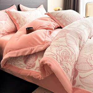 高级撸猫感宽边牛奶绒四件套秋冬季加厚双面珊瑚绒防静电被套床单