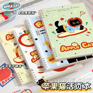 可爱苹果猫活页本子B5横线笔记本A5日记本可拆卸初中高中生线圈本