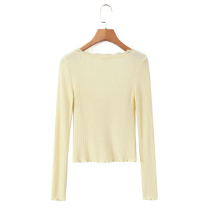 7642-25先进科学 法式复古小香风浅黄色花边领方领长袖开衫针织衫