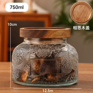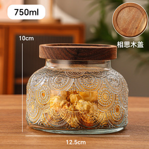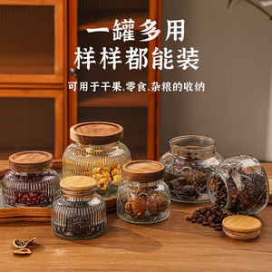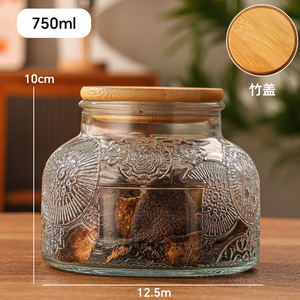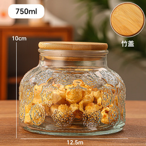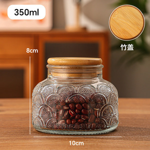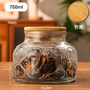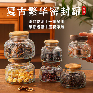 浮雕大肚储物罐密封玻璃罐厨房干果杂粮食品收纳罐批发透明糖果罐