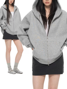 Archium 灰色宽松大廓形感连帽套头卫衣女空气层oversize厚外套